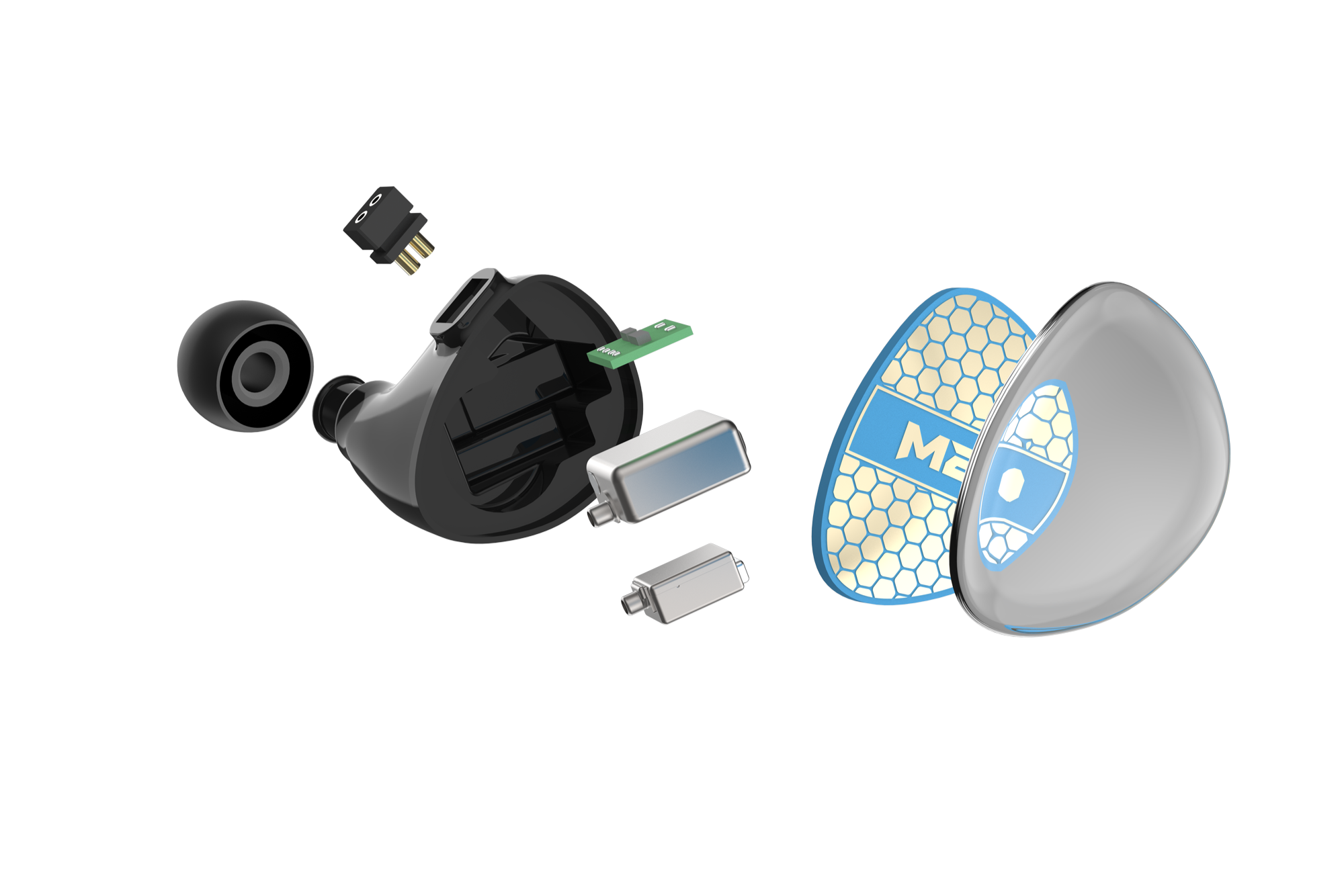 In this hybrid structure, we choose to use a specially designed armature driver with an open front acoustic vent and embedded it deep into the M20's 3d printed nozzle. The proximity to the user eardrum eliminates sound pressure decay and any unwanted resonance in a typical tubed balanced armature design.